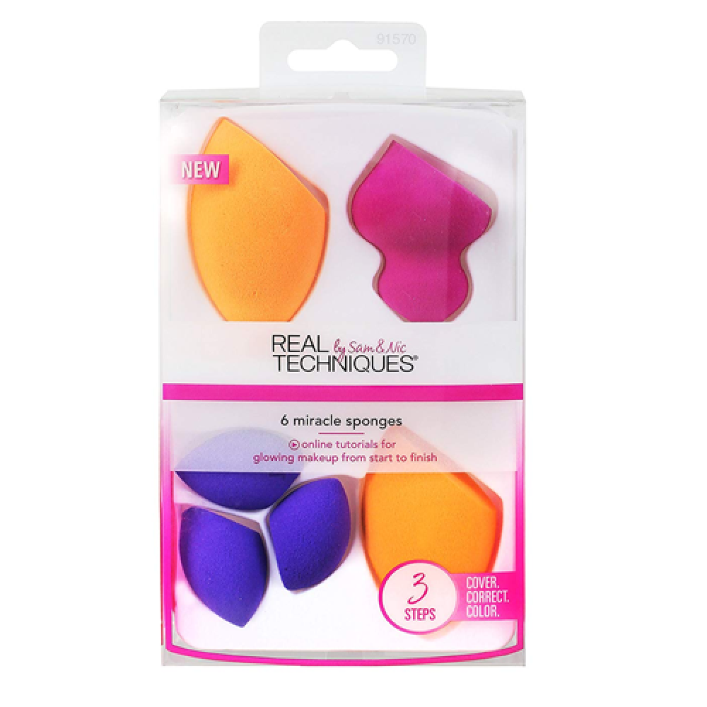 مجموعة اسفنج ميركل من ريل تكنيك :مجموعة المعجزة من ريل تكنيك، تتكون من 6 قطع اسفنجية، لتضمن لك مظهر مثالي بلمسة احترافية.يمكنك استخدامها مع مساحيق التجميل السائلة أو الباودر أو حتى الكريمية.تحتوي على:2 اسفنجة للتغطية والدمج3 اسفنجة صغيرة لمنطقة ماحول العينين1 اسفنجة لتحديد ملامح الوجه والهايلايتر