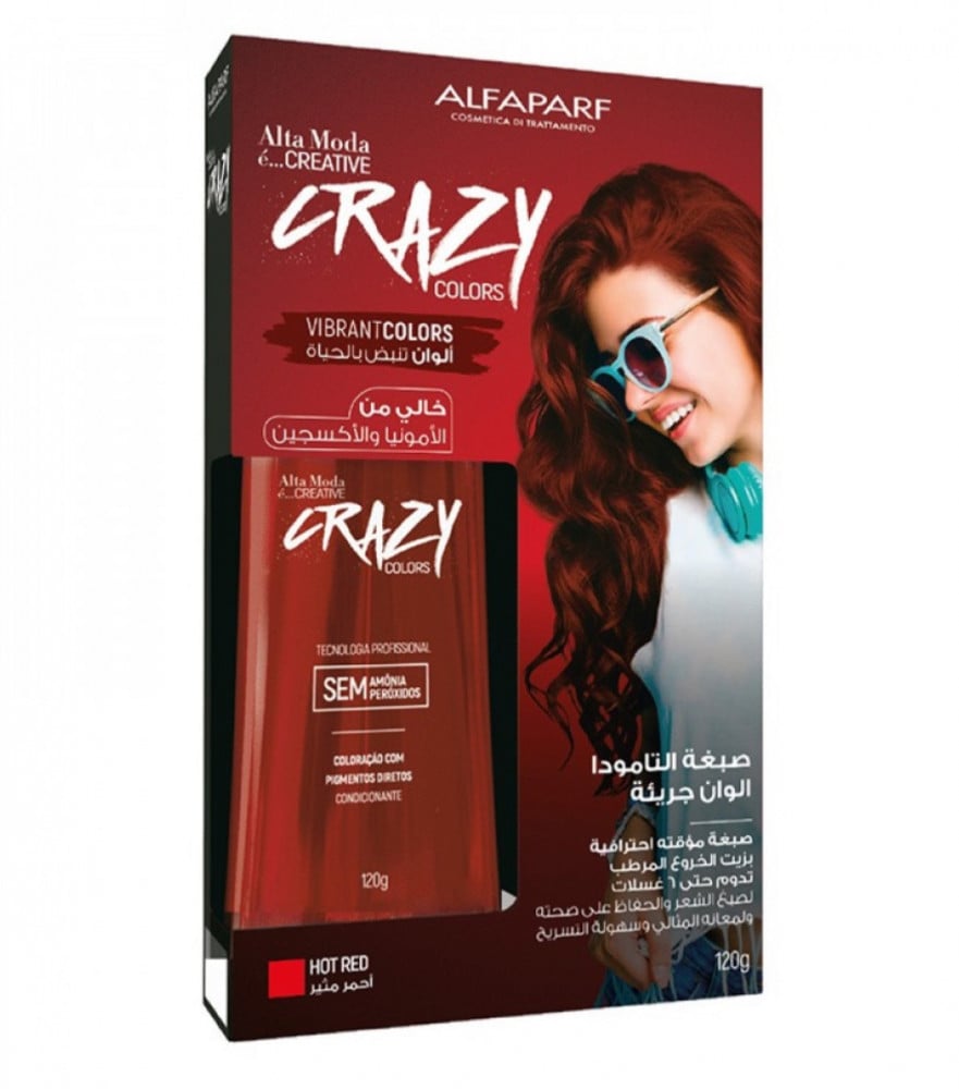 - طريقة الاستخدام: بعد تفتيح الشعر ، اغسليه بالشامبو مرة واحدة (لا تستخدمي البلسم) ، قومي بإزالة الماء الزائد بمنشفة. ضعي كريزي كولورز بفرشاة للحصول على اختراق ممتاز للأصباغ ، افركي اللون بيديك ، ولفي خصلة الشعر بالكامل. اتركيه للعمل لمدة 30 دقيقة. اشطفي كل الشعر تحت الماء الجاري وجففيه حسب الرغبة الطبيعية أو بفرشاة / مكواة.
