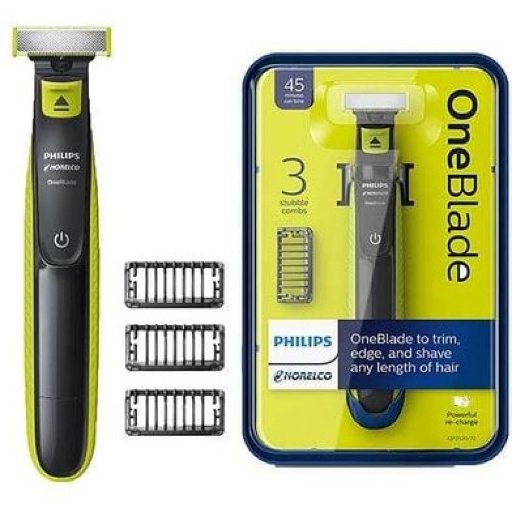 - تم تصميم أداة OneBlade من Philips لتسريح شعر الوجه والعناية بشعر الجسم، وهي تقوم بتشذيب الشعر مهما كان طوله وحلاقته وتحديد حوافه. علاوة على ذلك، توفر هذه الأداة حلاقة سهلة ومريحة بفضل غلاف يسمح بالانزلاق مع رؤوس مستديرة، كما تتميز بأداة قص تتحرك 200 مرة في الثانية، ما يجعلها فعّالة حتى على الشعيرات الأطول.