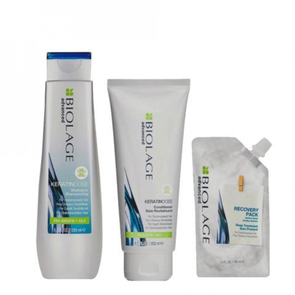 تم تصميم شامبو كيراتين دوز للمساعدة في العناية بالشعر المعالج بشكل مفرط أو الضعيف أو الهش. عندما يتم دمجه مع بلسم كيراتين دوز وسبراي التجديد برو كيراتين، فإن التركيبات توفر التنظيف مع الاحتفاظ بالرطوبة للمساعدة في مكافحة التجعد واستعادة الشعر المعالج بشكل مفرط.