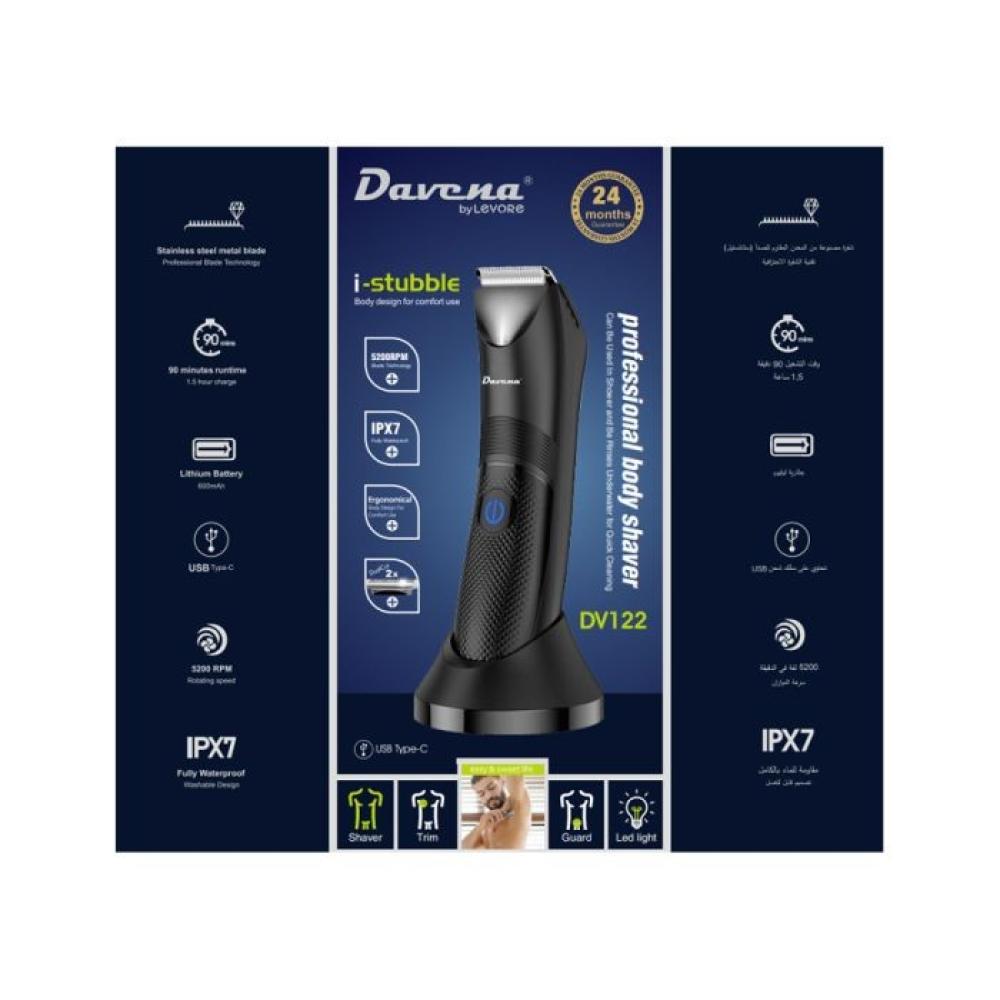 ماكينة حلاقة للجسم دافينا ماكينة حلاقة للجسم تقدم أداءً متطورًا مع شفرات حادة وتصميم مريح مقاوم للماء، لتشذيب شعر الجسم بدقة وسهولة.