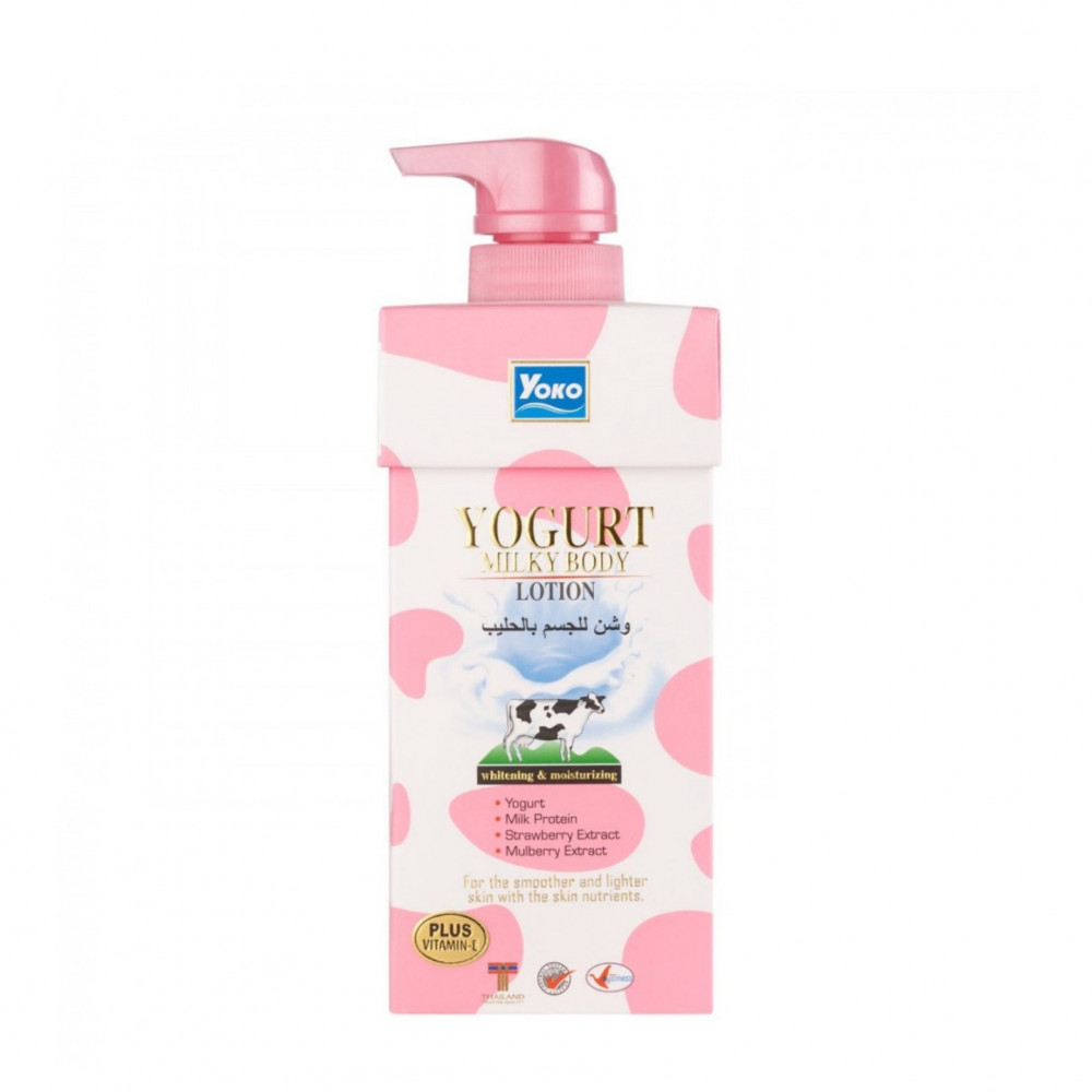لوشن الحليب للجسم مع فيتامين هـ والزبادي من يوكو 400 مللوشن حليب يوكو بروتين الحليب لتبييض وترطيب الجسم بالإضافة إلى تركيبة فيتامين ه مستخلص الفراولة وخلاصة التوت.غير دهني / لتغذية وترطيب بشرتك بمظهر أكثر نعومة وأخف وزنا وأكثر صحة